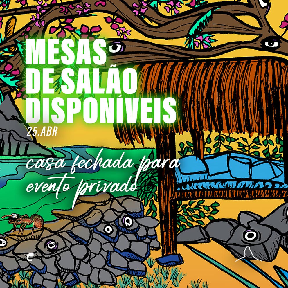 Dia 25 de abril, sábado, teremos evento privado na casa. Mas, para não deixar seu “sábado na mão”, estarão disponíveis as mesas de salão, com vista para a Praia do Meio, organizadas por ordem de chegada. Por isso garanta seu espaço e chegue antes das 15h.