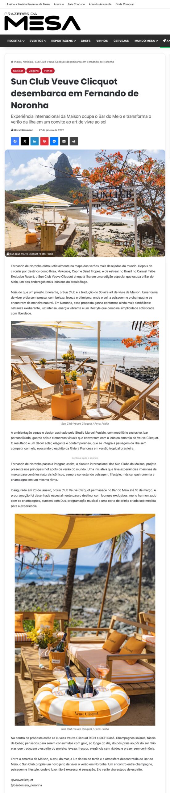 Fernando de Noronha entrou oficialmente no mapa dos verões mais desejados do mundo Depois de circular por destinos como Ibiza. Mykonos. Capri e Saint Tropez.e de estrear no Brasil no Carmel Taíba. Exclusive Resort, o Sun Club Veuve Cliquot chega a ilha em uma edição especial que ocupa o Bar do Meio, um dos endereços mais icônicos do arquipélago.